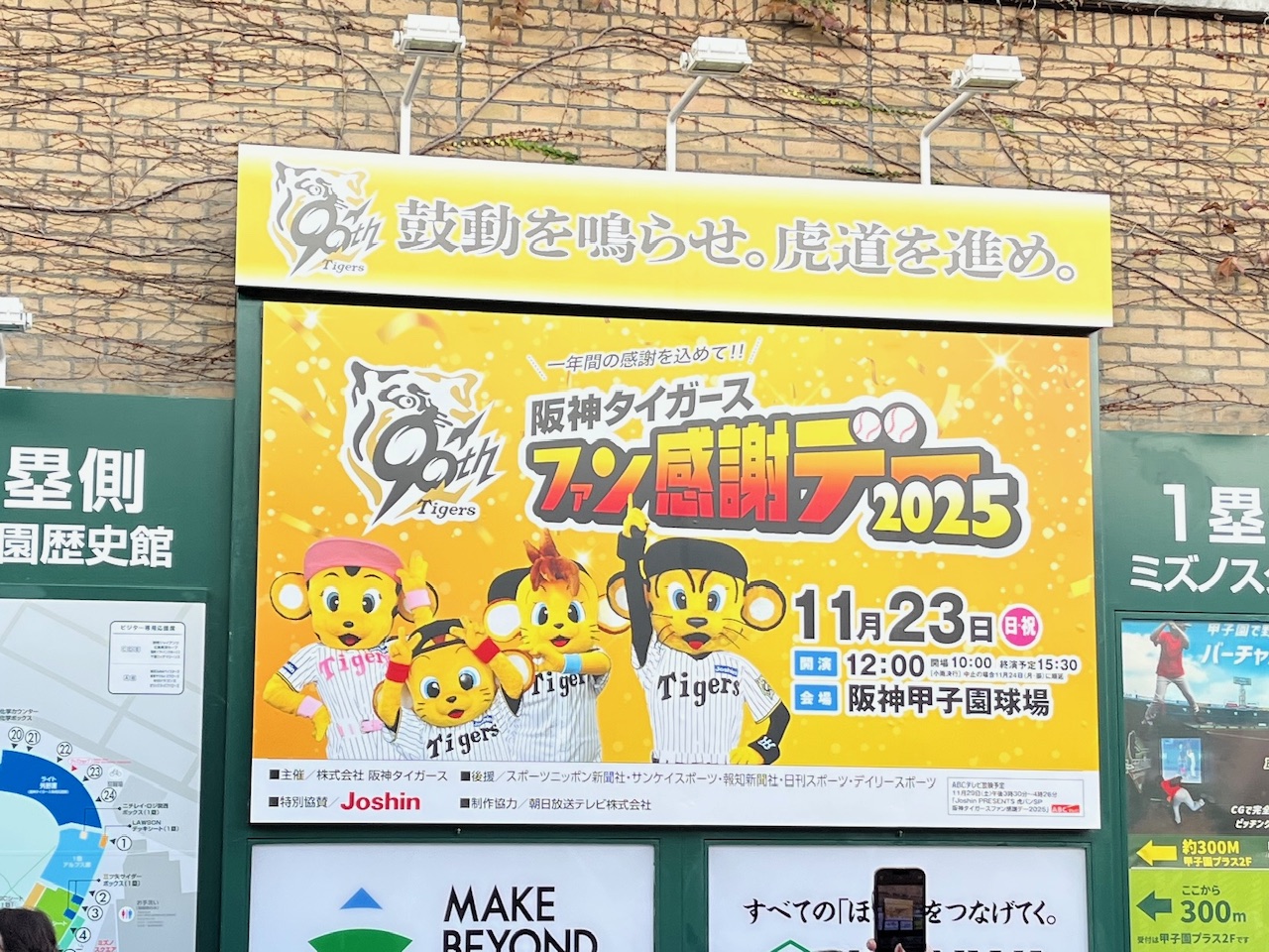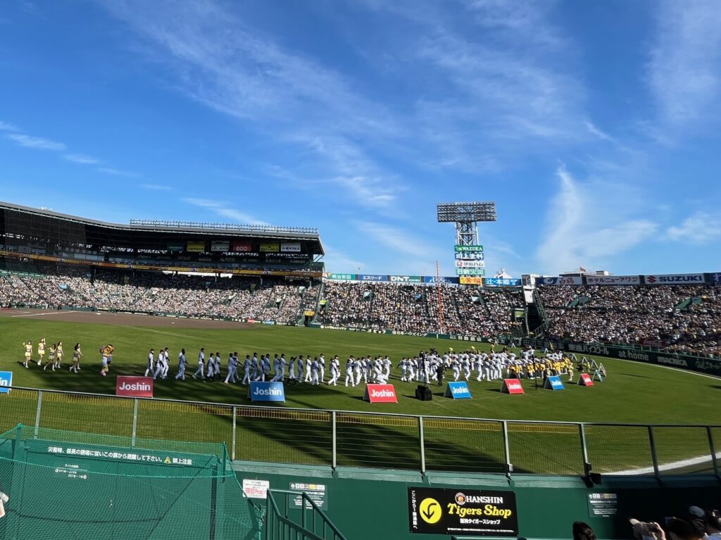 11月も終わりとは思えないぽかぽか陽気。日向は上着がいらないほどだった。そしてシーズン中のデーゲームと変わらない満員の観客!さすがタイガースやね(笑)。